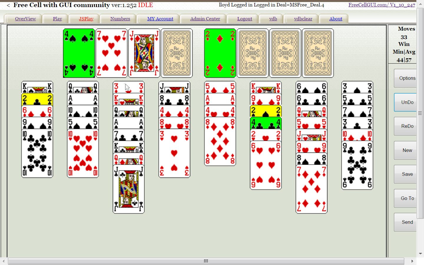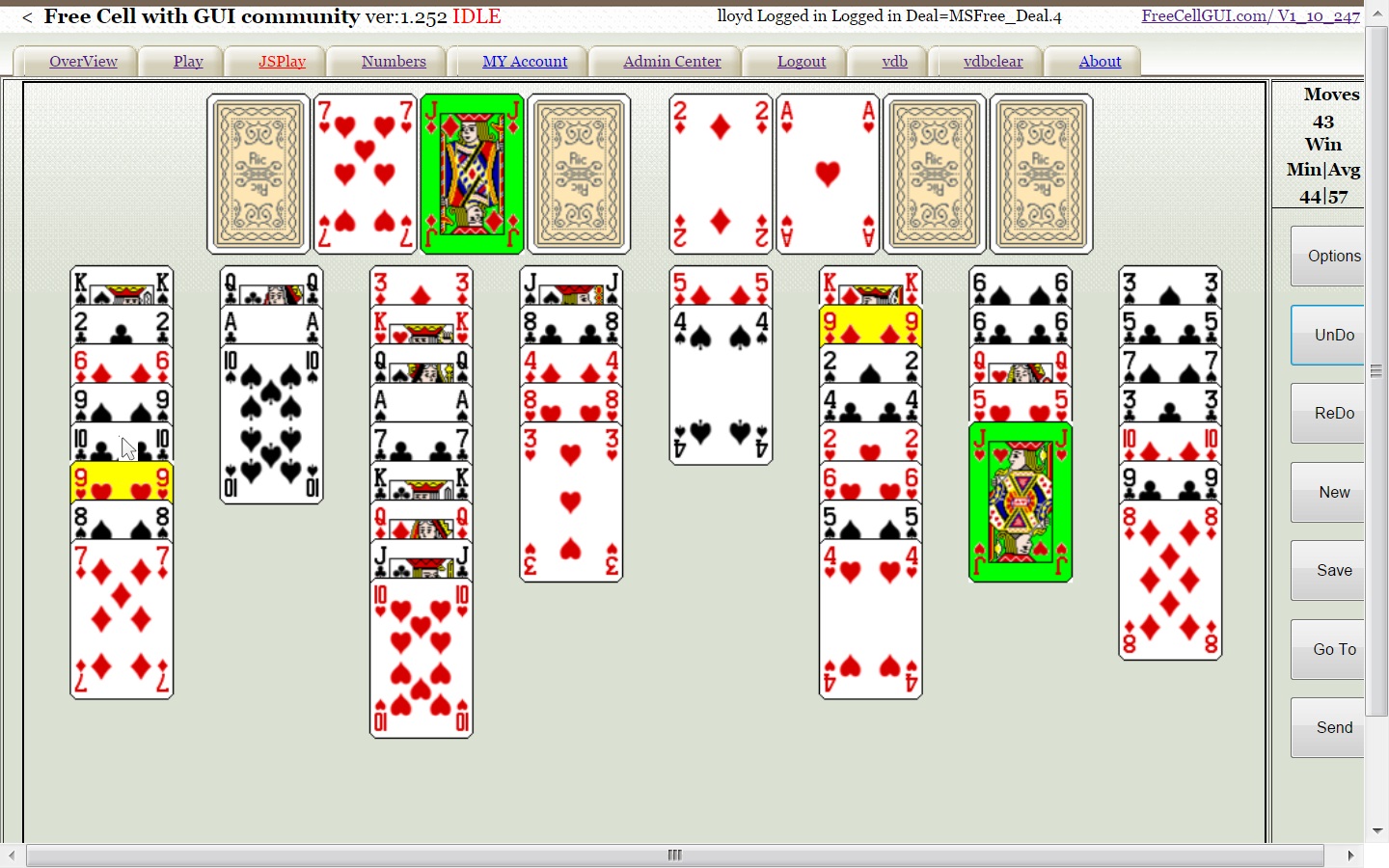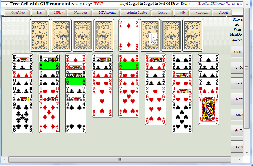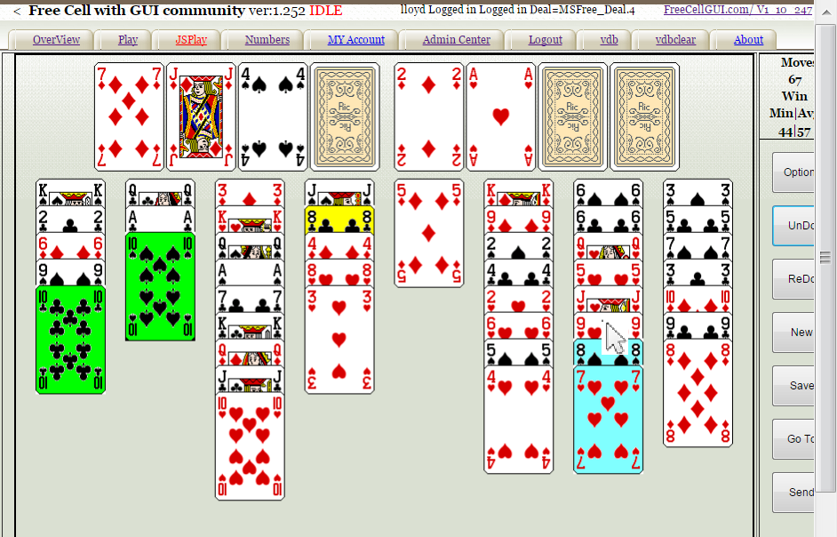 | Free Cell with GUI community | Guest Logged in | FreeCellGUI.com/ V1_10_257 |