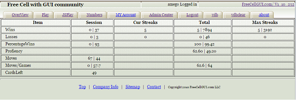 The purpose of this site is to enhance the experience of playing FreeCell Solitaire by establishing an environment that collects, records, and reports statistics about the deal , Challenge , and User, recognition of achievements and an implementation that provides a Graphical User Interface (JSFreeCell) to assist with the mechanics of playing.